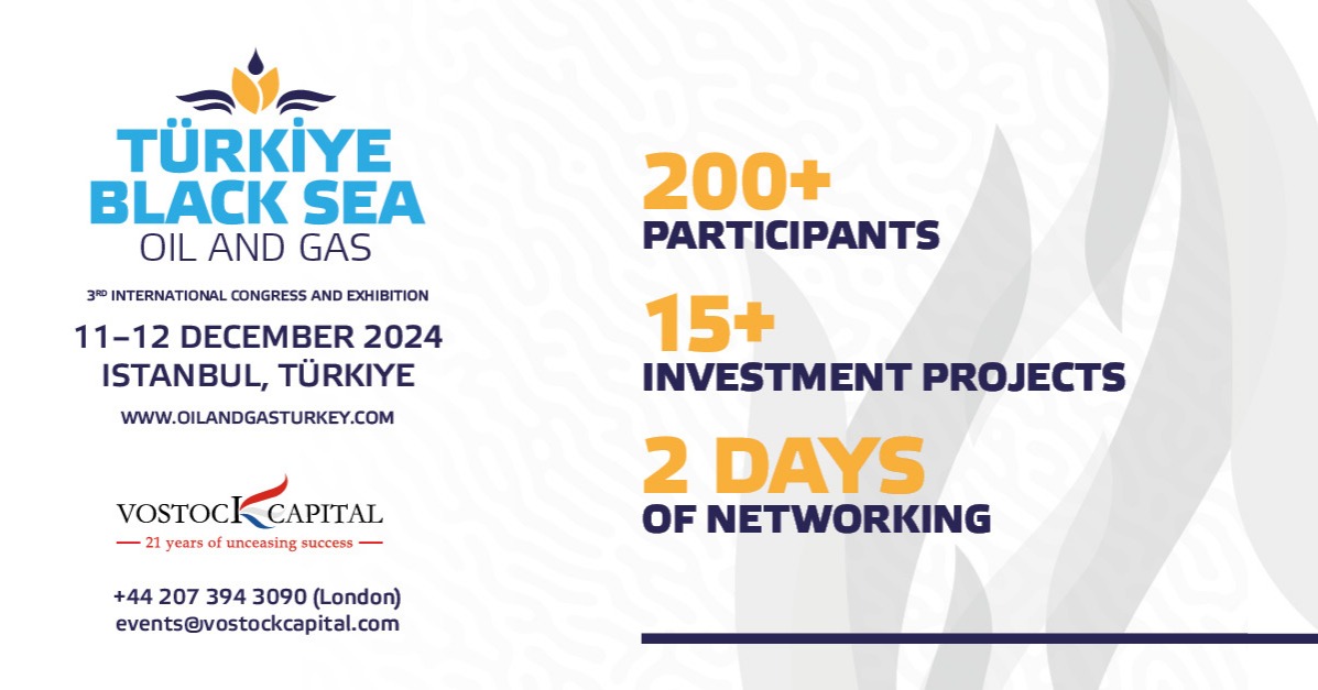 Vostock Capital UK is excited to announce the 3rd International Congress and Exhibition Türkiye & Black Sea Oil and Gas, set for 11-12 December 2024 in Istanbul. The event will gather senior executives from leading oil companies, refineries, gas plants, and petrochemical facilities across Türkiye and the Black Sea region. Participants will include officials from regulatory bodies, technology licensors, and global suppliers, creating a unique platform for industry professionals to discuss trends, investment opportunities, and challenges in the oil and gas sector.