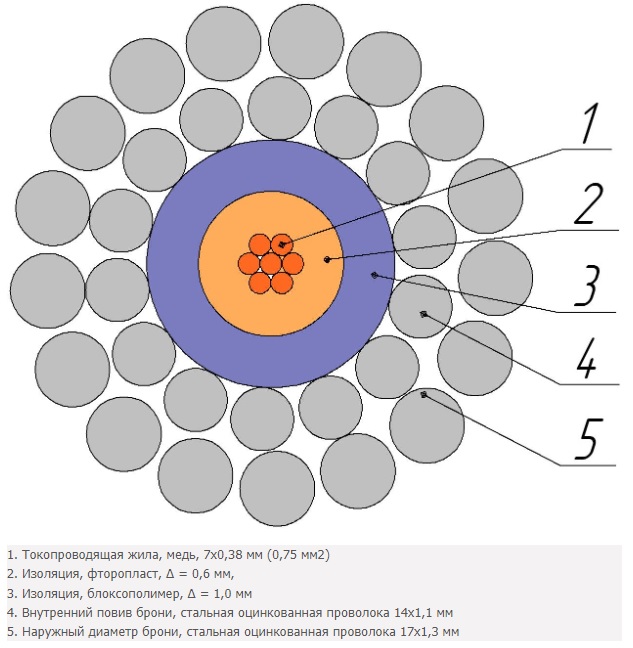 Кабель соответствует ТУ 3585-003-43045042-2003 "Кабели грузонесущие геофизические бронированные".