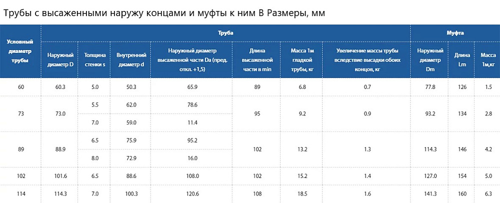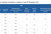 В настоящей таблице применены следующие обозначения видов концов труб: P - без резьбы; N - для соединения HU; U - для соединения EU; H - для соединения HKTB; K - для соединения HKT