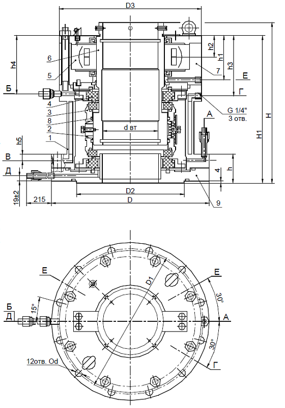 Примечание. При использовании уплотнений для эмалированных аппаратов нижнюю поверхность уловителя изготовляют без выступа (с гладкой уплотнительной поверхностью).