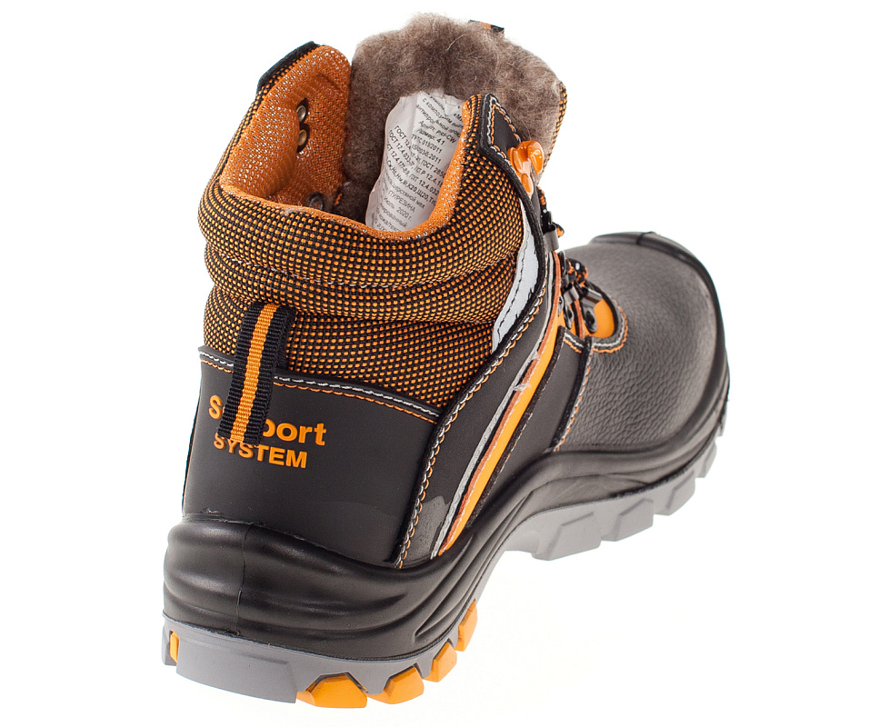 Для защиты от ударов в носочной части стопы в обуви применяется композитный подносок (Мун 200), имеющий конфигурацию, препятствующую надавливанию верхнего края на стопу, и оборудованный прокладкой из полиуретана.