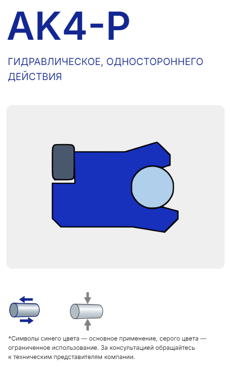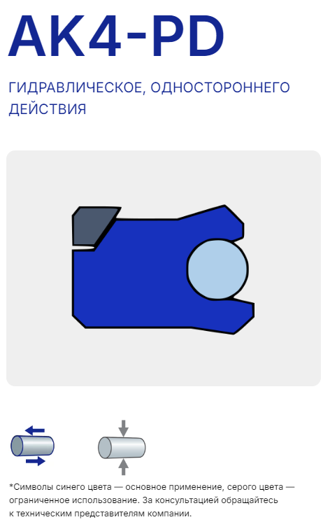 - Ассиметричное уплотнение поршня для стандартного применения, также как АКЗ-Р;