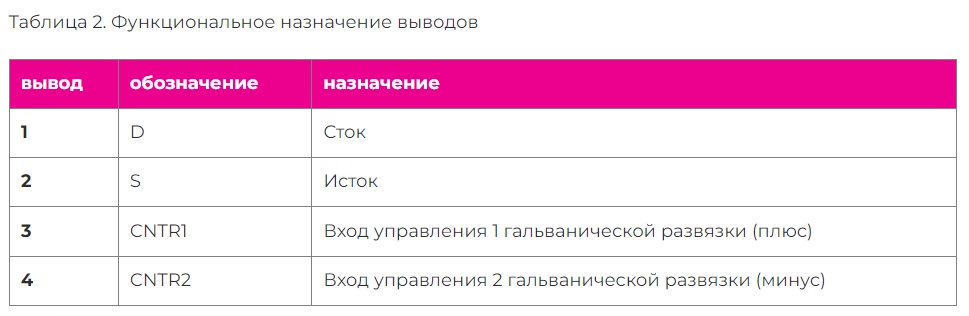 Было разработано 15 силовых ключей (табл. 1.) в корпусах КТ-95 и КТ-110. Функциональное назначение выводов (табл. 2) и условное графическое изображение (рис. 1.) у всей серии одинаковы.